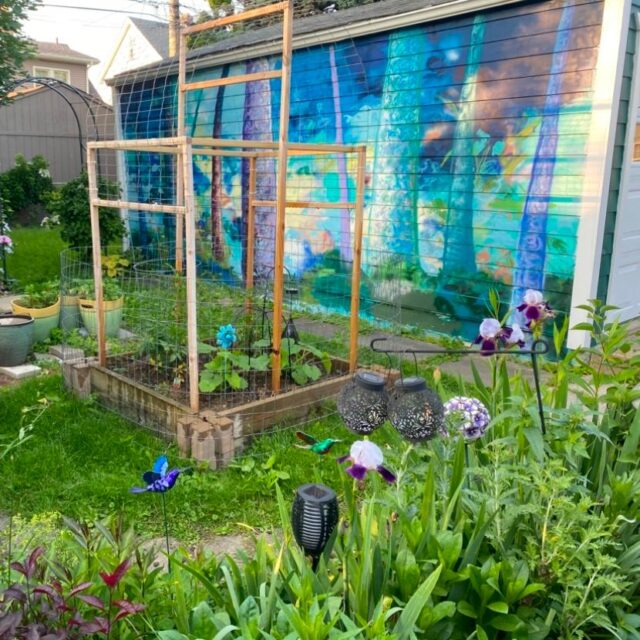 I painted four murals in the garden near my studio in the late summer/early fall of 2022.